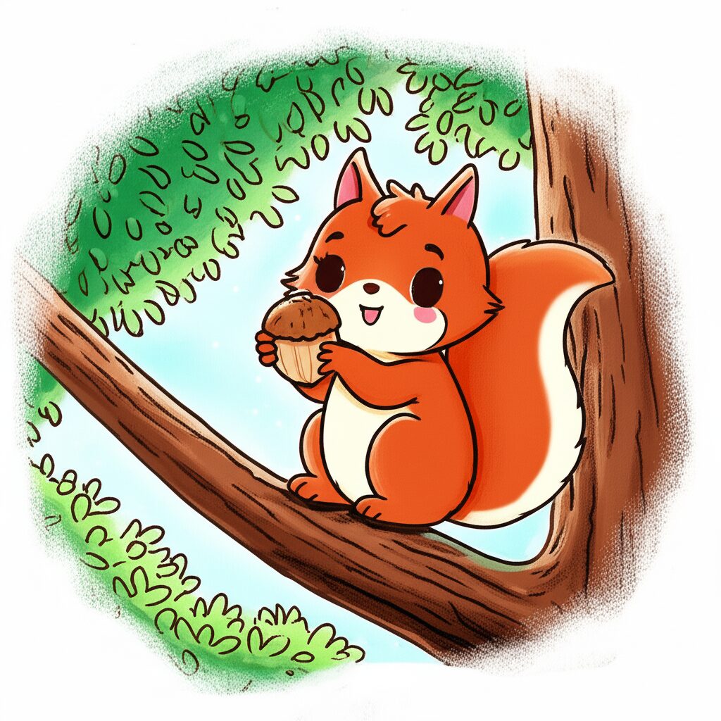 つぎに、リスさんのところへ。「リスさん、リスさん、キラキラのおほしさま、しらない?」 リスさんは、くるみをもぐもぐしながら、「うーん、ぼくも知らないよ。でも、もりのなかには、ふしぎなものがたくさんあるから、もっと奥に行ってみたら?」