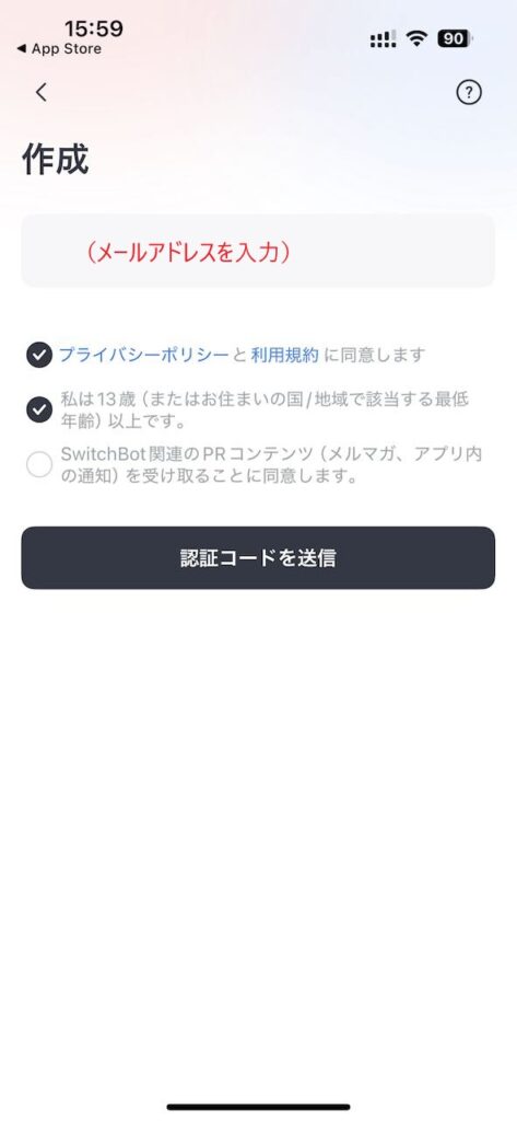 - SwitchBotからのPRコンテンツ(おすすめ情報的なやつだと思います)を受け取る場合は、「PRコンテンツを受け取る」のチェックを入れる