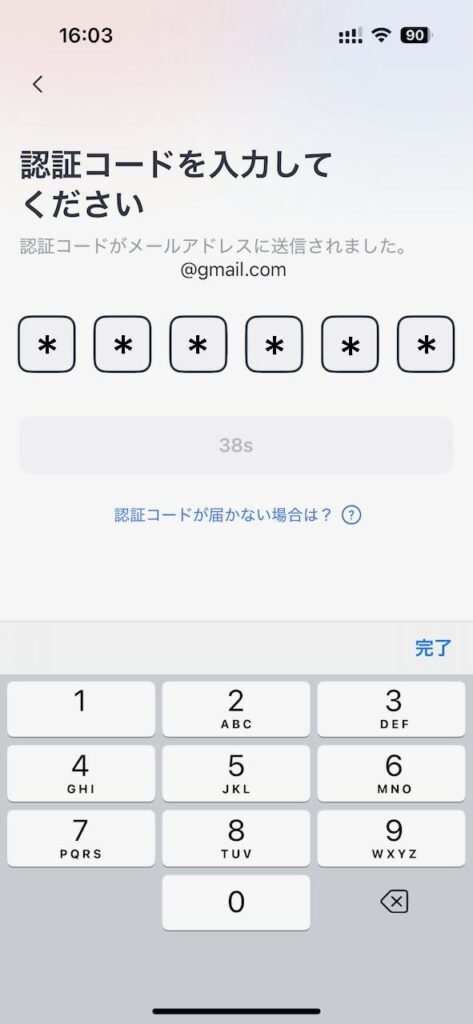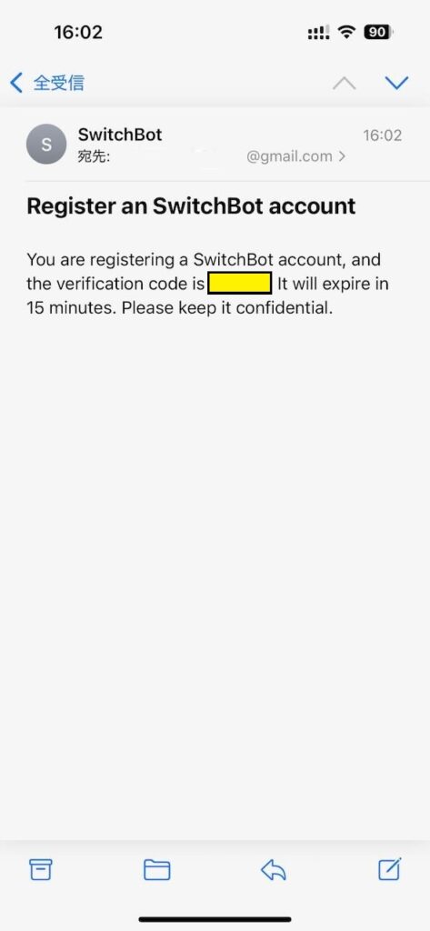 ・入力したメールアドレス宛に届いたメールを開き、認証コードを確認。 (画像の黄色部分記載の数字)
