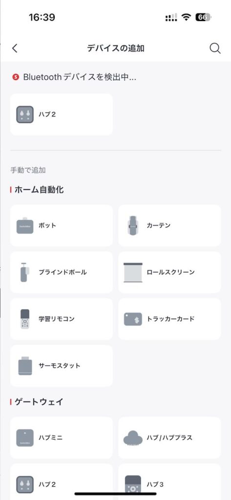 ・デバイスが検出されるのを待ち(数秒以内)、「ハブ2」を選択