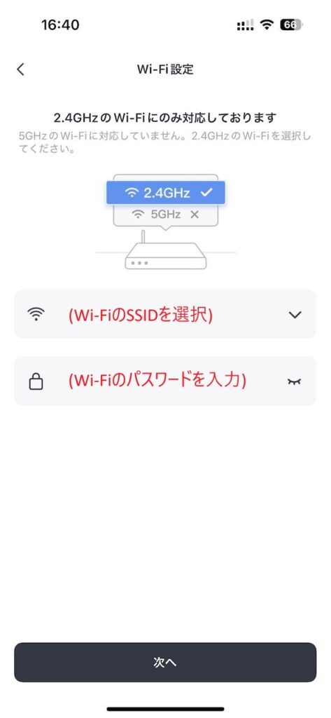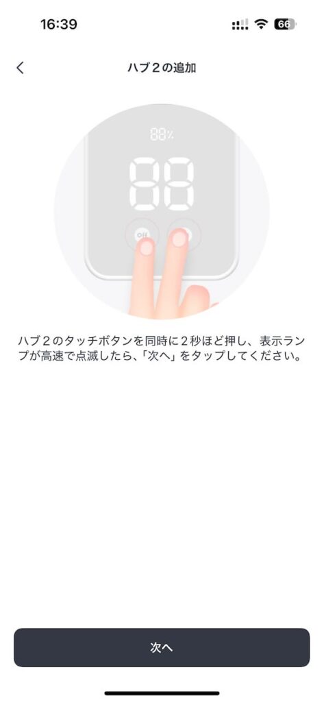 続いて、ハブ2本体をWi-Fiに接続する設定を行います。