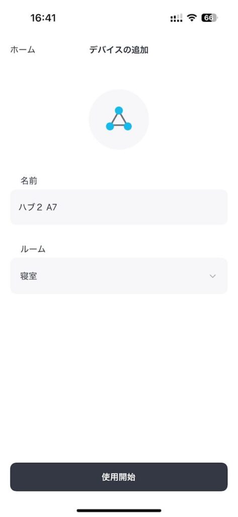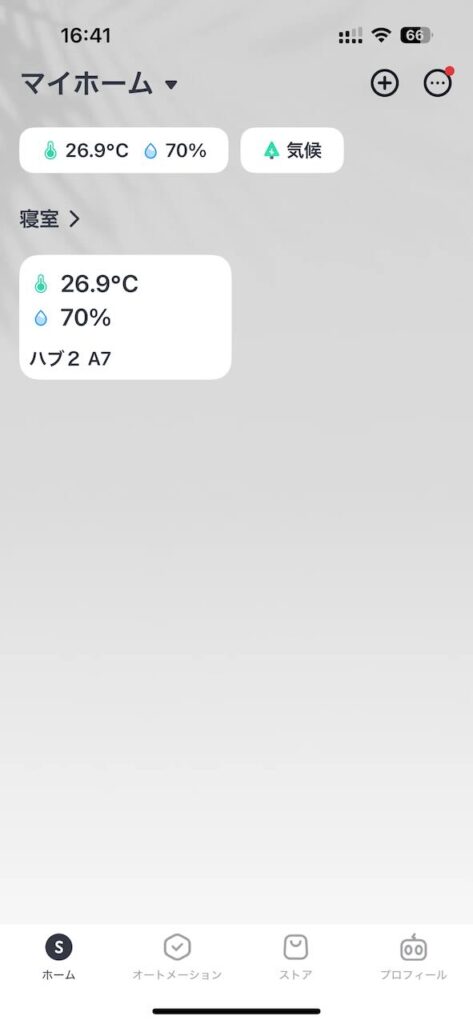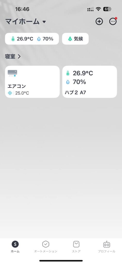 「ホーム」メニューに切り替わり、ハブ2が表示されていればSwitchBotハブ2本体のセットアップは完了です。