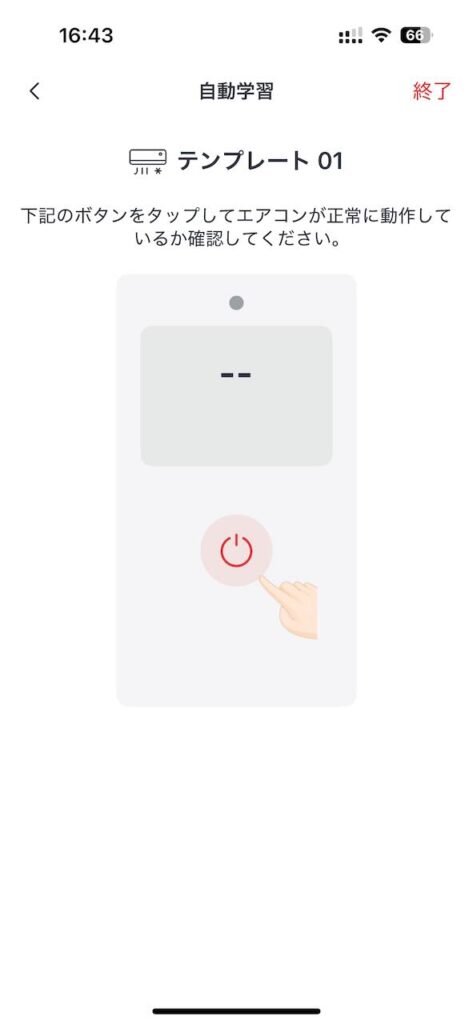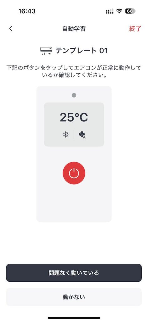 このステップが完了すれば、スマートリモコンでエアコンを操作することができる状態になります。